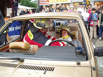 Die Kinder nutzten die Gelegenheit, um sich in den Fahrzeugen als kommende Feuerwehrgeneration zu fühlen, den Erwachsenen wurden kräftig Fragen beantwortet.