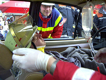 Die 3.Übung umfasste den Teil technische Hilfeleistung mit Vorführung von hydraulischem Rettungsgerät (Schere/Spreizer) sowie dem Rettungsdiensteinsatz. Dazu danken wir dem DRK-Kreisverband Hamburg-Altona, der einen RTW, Material und Personal für diesen Übungseinsatz stellte.