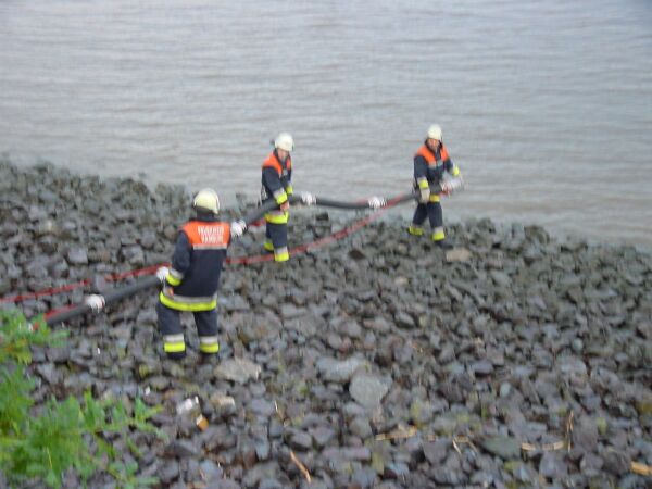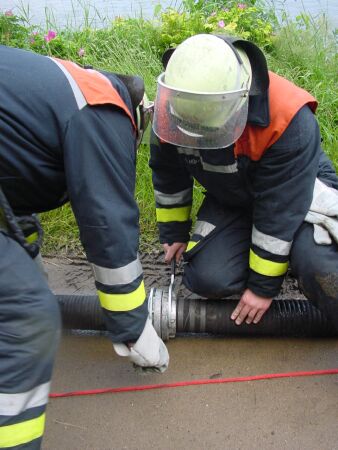 Im Rahmen des Übungsdienstes zum Thema „Wasserversorgung über lange Wegstrecken“ hat die FF-Rissen den Brandeinsatz unter den besonderen Bedngungen in der Wittenbergener Heide trainiert. Hierbei wurde die Möglichkeit der Wasserentnahme aus der Elbe unter Zuhilfenahme des Kleinbootes getestet. Vom Kleinboot aus wurde eine, mittels eines an Bord genommenen Stromerzeugers, betriebene, Elektrotauchpumpe betrieben, die das Wasser über B-Druckschläuche an Land beförderte.