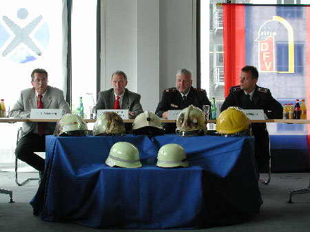 Kröger, Weber-Falkensammer, der Vorsitzende des DFV-Fachausschusses Sozialwesen, Michael Riggert, und der stellvertretende Leiter der Fachgruppe „Feuerwehren-Hilfeleistung“ des BUK, Ulrich Falkenberg, haben die Testergebnisse heute in der Vertretung der deutschen Feuerwehren in Berlin vorgestellt.