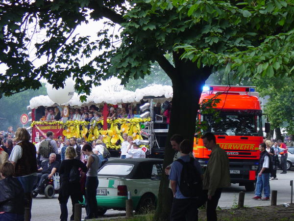 Die Freiwilligen Feuerwehren Altona und Eppendorf und die BF Altona übernahmen die Bereitstellung für den Schlagermove 2002 und die BF-Barmbek begeisterte mit Ihrem Truck die Massen.