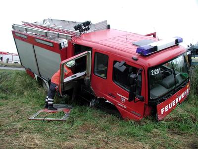 Hohnstorf (dpa/lno) - Bei dem Zusammenstoß eines Sportwagens mit einem Feuerwehrfahrzeug sind am Montagabend bei Hohnstorf (Landkreis Lüneburg) zwei Menschen schwer verletzt worden