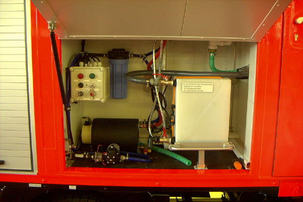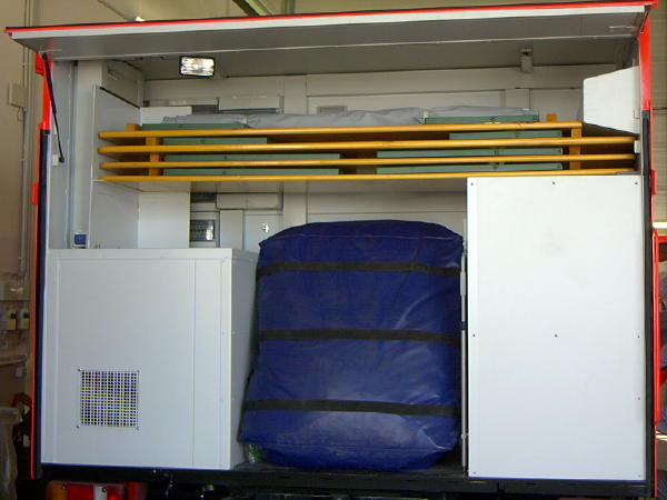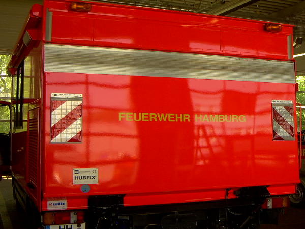 Bei dem neuen Fahrzeug handelt es sich um einen in leuchtrot lackierten und mit den üblichen gelben Streifen des Hamburger Design versehenen MB Atego 812 mit Kofferaufbau der Fa. Wille/Lüneburg. Im Aufbau befindet sich neben einer Einbauküche auch ein Wassertank. Zur Abgabe und Betankung steht eine „Schnellangriffshaspel D“ zur Verfügung. Am Heck, durch eine Ladebordwand zugänglich, sind ein Schnelleinsatzzelt sowie Tische und Bänke verlastet. Zur Stromversorgung wird ein 8 kVA-Stromerzeuger mitgeführt. Als Warnanlage wurden ein Blitzlichtbalken mit integrierter Martinhornanlage der Fa. Hänsch, außerdem Frontblitzer und ein Heckblaulicht eingebaut.