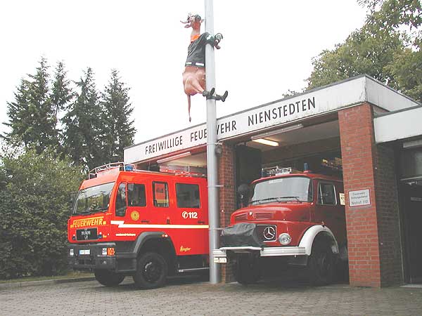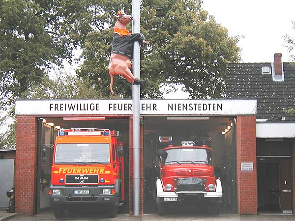 In einer Kooperation mit der Verlagsgruppe Milchstraße, der R+R Stahlrohr Vertriebsgesellschaft mbH und der Freiwilligen Feuerwehr Nienstedten wurde das Ortsbild um eine Attraktion reicher. Die neue Feuerwehrkuh, lebensgroß und immerhin ca. 90kg schwer, rutscht eine Stange zum Einsatz hinunter, wie man es aus einigen Feuerwehrwachen kennt.