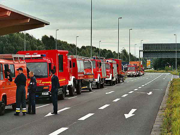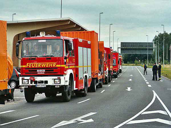Außerdem noch von der Berufsfeuerwehr ein B-Dienst (Einsatzführungsdienst) und ein Fahrer samt Zugfahrzeug vom Kampfmittelräumdienst auf dem Stützpunkt der Freiwilligen Feuerwehren Fünfhausen und Warwisch zum Abmarsch nach Bremen.