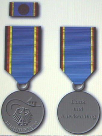 Die Bundesminister des Innern und der Verteidigung haben am 20.09.2002 eine Einsatzmedaille für die Fluthelfer bei der Elbe-Flut im August gestiftet.