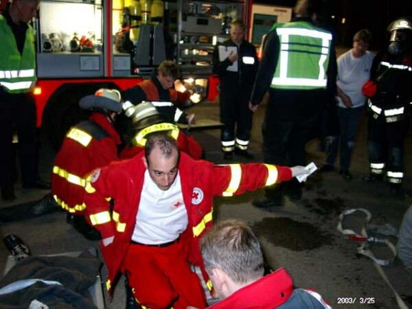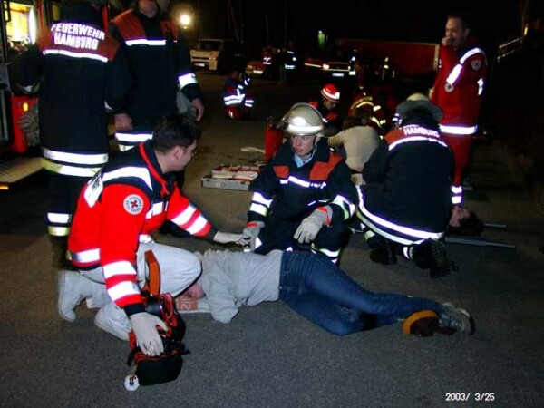 Am 25.03.2003 führten die FF Billstedt-Horn und das DRK Hamburg-Mitte an der Landesfeuerwehrschule eine gemeinsame Sanitäts-Einsatzübung durch.
