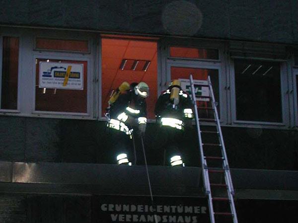 Angenommene Lage war eine Verpuffung im Keller eines 5-stöckigen Abbruchgebäudes. Es gab 8 verletzte Personen die gerettet werden mussten.