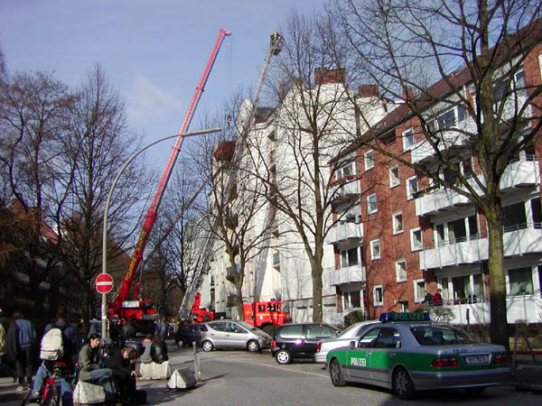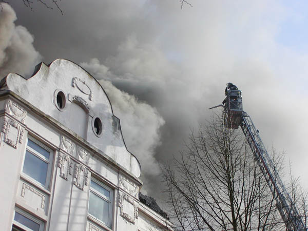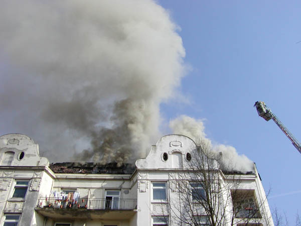 Zunächst bemerkten Anwohner Rauch im Bereich des Dachstuhls. Im weiteren Verlauf schlugen offene Flammen aus dem Dach, so dass sich der Brand auf den gesamten Dachstuhl des Hauses und darunter liegende Wohnungen ausweitete. Die Flammen schlugen auch auf das Dach des direkt angrenzenden Gebäudes über. Die Löscharbeiten konnten erst gegen 19.00 Uhr beendet werden. Es wurden die Bewohner von 24 Wohnungen evakuiert. Die Wohnungen sind derzeit aufgrund des Löschwasserschadens unbewohnbar.