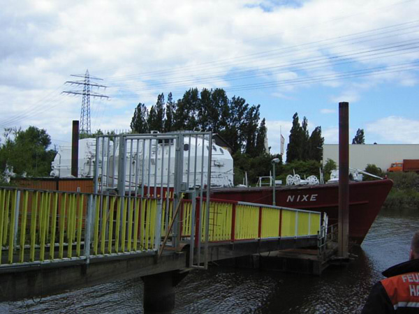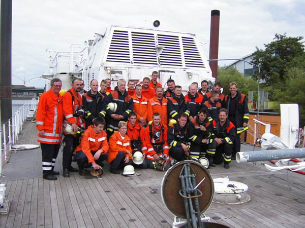 Am 21.06.03 führte die FF Hausbruch mit der FF Vierhöfen aus dem Landkreis Harburg zusammen eine Übung an der Landesfeuerwehrschule durch. Das Übungsobjekt war die ´Nixe´.
