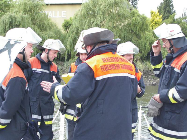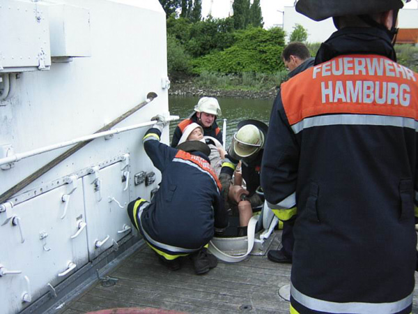 Am 21.06.03 führte die FF Hausbruch mit der FF Vierhöfen aus dem Landkreis Harburg zusammen eine Übung an der Landesfeuerwehrschule durch. Das Übungsobjekt war die ´Nixe´.