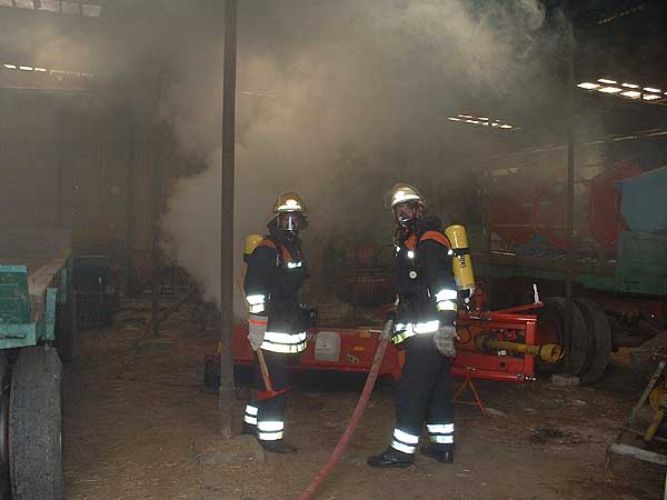 Diese Meldung bekam der Zugführer der FF Kirchwerder Nord und rückte mit zwei LF16, die jeweils voll besetzt waren, aus. Der Einsatzort war ein Bauernhof auf dem zwei landwirtschaftliche Gebäude brannten. Die 30 x 30 m große Leichtbauhalle diente zum lagern von Heuballen, wo hingegen in der zweiten landwirtschaftliche Maschinen untergestellt waren. Auf dem Hof wurden Zug- und Gruppenführer eingewiesen. Vier Personen galten als vermisst. Sofort wurde FEUY gegeben und die FF Bille nachalarmiert. Die Personenrettung erfolgte zuerst durch die FF Kirchwerder Nord und konnte wenig später mit den Kameraden der FF Bille gemeinsam durchgeführt werden. Parallel erfolgte der aufwendige Aufbau einer Wasserversorgung zur Brandbekämpfung.