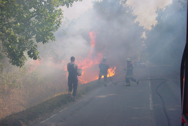 Die Problematik bei diesem Feuer stellte die Brandausbreitung in Richtung einiger Wohnhäuser.