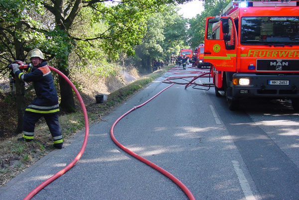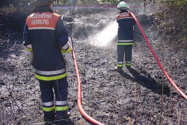 2.) Das zweite Feuer wurde im Hainholzweg/Harburg entdeckt. Dort brannten 5000 m² Feld und Buschwerk.