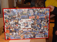 Der Grund hierfür war ein ganz einfacher. Reinhard hatte nach 10jähriger Tätigkeit als Jugendwart seinen Rücktritt erklärt. Natürlich ohne sein Wissen war seit mehreren Wochen an dem Geschenk gebastelt und die Feier geplant worden. Der Einladung seines Vertreters waren alle Eltern gefolgt und bereiteten dem scheidenden Reinhard so einen unvergesslichen Abend. „Mir hat die Arbeit immer Spaß gemacht und ich werde auf Landesebene natürlich weitermachen. Wir haben langsam einen Nachfolger aufgebaut und nun ist es Zeit ihn das Zepter zu übergeben“, erklärte Reinhard seine Entscheidung. Neben „seinen“ Kiddys und den Eltern dankten auch die Wehrführer Gerd Rüther und Christoph Graubner Reinhard für seine hervorragende Arbeit. Die Präsente des Abend werden wohl alle einen Ehrenplatz bekommen.