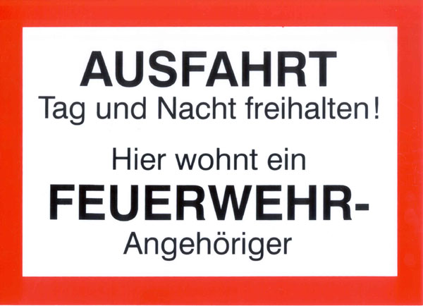 Deswegen kam ein Feuerwehrmann aus Niedersachsen auf die Idee ein Hinweisschild mit der Aufschrift „Ausfahrt Tag und Nacht freihalten! Hier wohnt ein Feuerwehrangehöriger“ vor seiner Ausfahrt anzubringen. Nicht ohne Erfolg- denn die Zahl der Falschparker ist seitdem deutlich zurück gegangen.