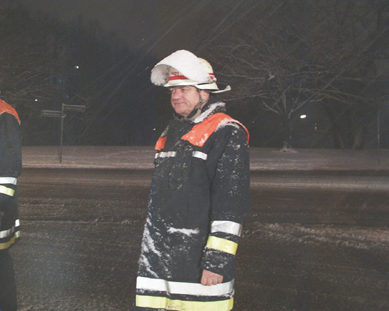 Die eingesetzten Kräfte für die Ausleuchtung des Aufbaus des 800 to-Krans staunten nicht schlecht, als Sonntag morgen um 3 h der Winter mit dichtem Schneefall und eisigem Wind zurückgekehrt war.