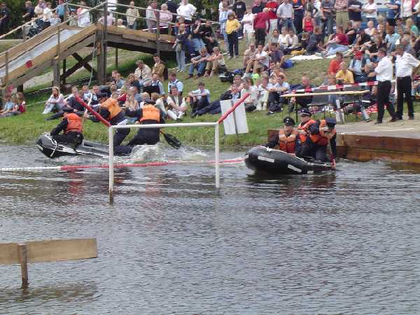 Die FF Kirchwerder – Nord verteidigte erfolgreich den Titel beim traditionellen Schlauchbootwettkampf der Bergedorfer Zeitung