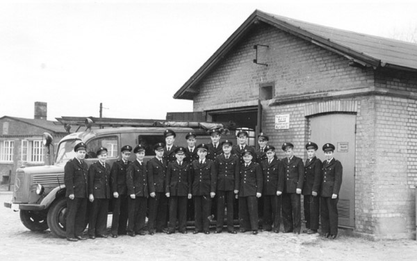 Besonders schwer war der Wiederaufbau der Berufswehren. Kaum Personal, Fahrzeuge veraltet, Feuerwachen zerstört. Bei den Freiwilligen sah es nicht viel besser aus, noch sind Kameraden nicht aus der Gefangenschaft zurückgekehrt. Fahrzeuge so weit vorhanden in einen desolaten Zustand. Keiner hatte den Mut, in der ersten Zeit wieder eine Uniform zu tragen.