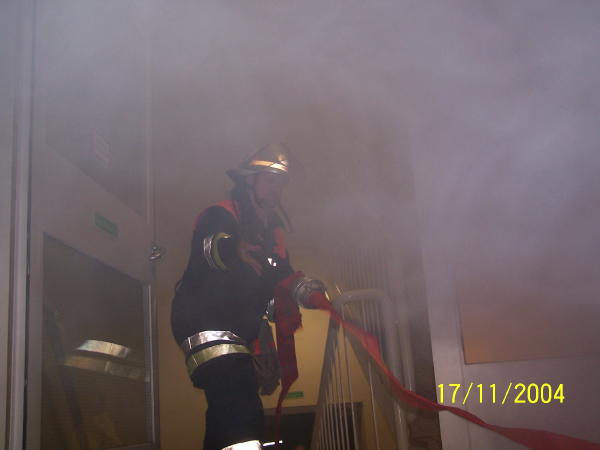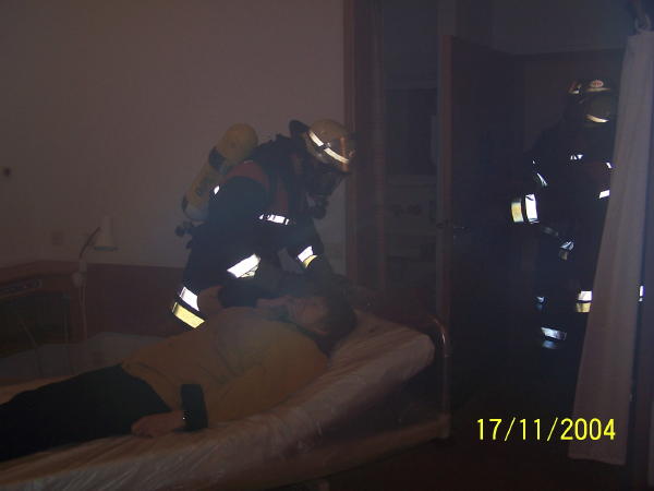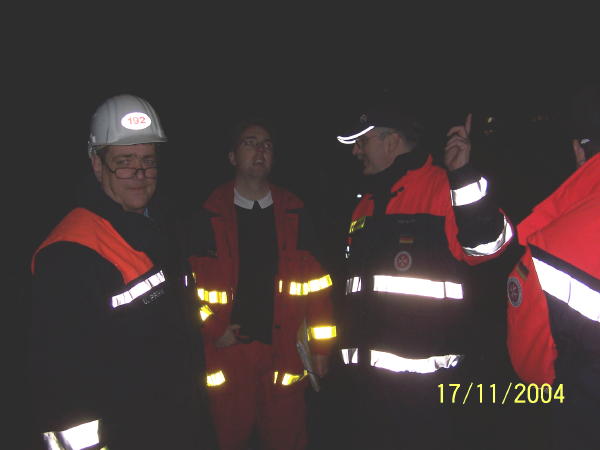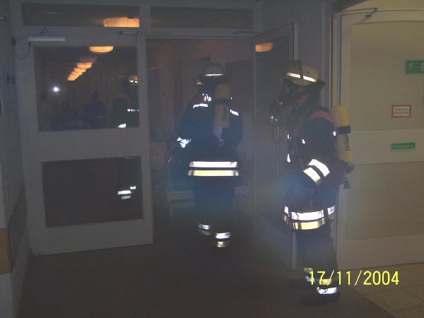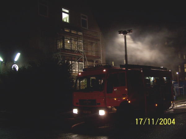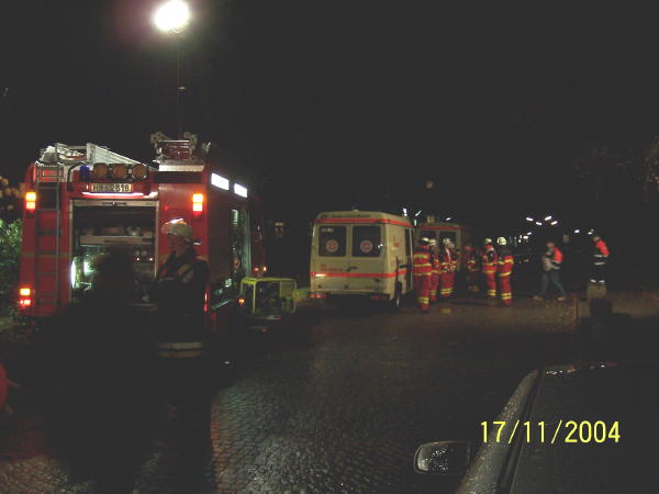Am Abend des 17.11.04 übten drei FF, Bereichsführung und weitere Rettungsdienst-Kräfte die Brandbekämpfung und das In-Sicherheit-bringen von Personen im ehem. Krankenhaus Rissen...