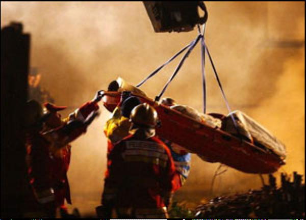 Bergung eines Opfers in einer Schleifkorbtrage