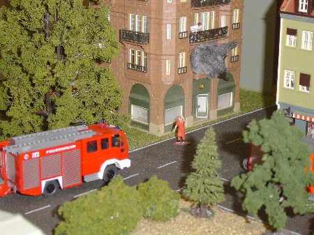 Mit diesem Wissen ging es dann in der zweiten Woche in die Planspielübungen und auf das Übungsgelände der LFS. Florian LFS 05/1 übernehmen Sie: Brennt Müllcontainer in der Moltkestrasses 10. Alleineinsatz. So oder ähnlich lautete die Einsatzmeldung an die Zugführer in Spe über Funk. In der Stärke 1/2/14 ging es dann mit zwei LF Hansa zum Vielfachübungsobjekt der LFS. Hilfe! Holen Sie mich runter!, erschall es bei der Ankunft. Statt eines brennenden Müllcontainers erwartete den Einsatzleiter eine am Fenster und im Rauch stehende Person im zweiten Obergeschoss. Was ist passiert? Sind weitere Personen anwesend? Sind Sie verletzt? Wo sind die Zugänge? Sind sie offen oder verschlossen? rief der Einsatzleiter im Rahmen seiner Erkundung der gefährdeten Person zu.