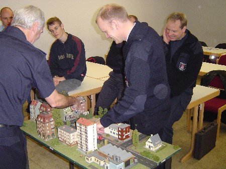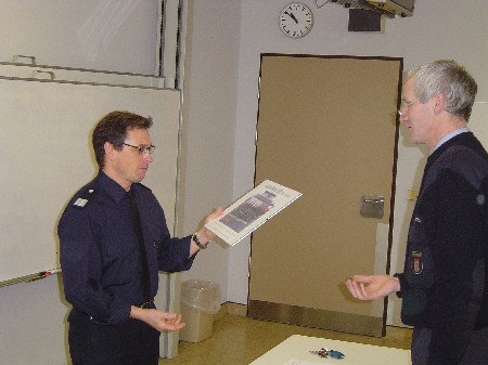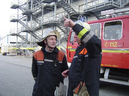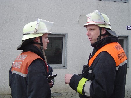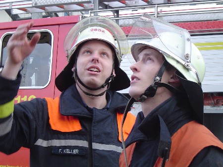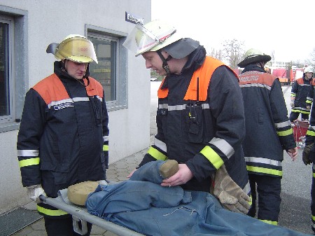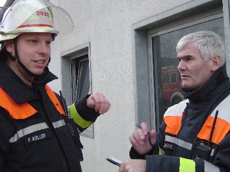 Melder, Person beruhigen und retten. Gruppenführer LF 1 und LF 2 zu mir…, kam die kurze Anweisung des Zugführers. Es folgt eine Lageeinweisung an die Gruppenführer, Nennung der Einsatzform und die Auftragsvergabe an die Gruppenführer sowie die Rückmeldung an die Einsatzzentrale. Dieser Ausschnitt aus den Einsatzübungen gibt einen kleinen Eindruck über die Vorbereitungen auf die schriftliche und praktische Prüfung, die alle Teilnehmer am 14. Januar 2005 erfolgreich absolvierten.