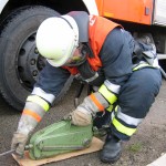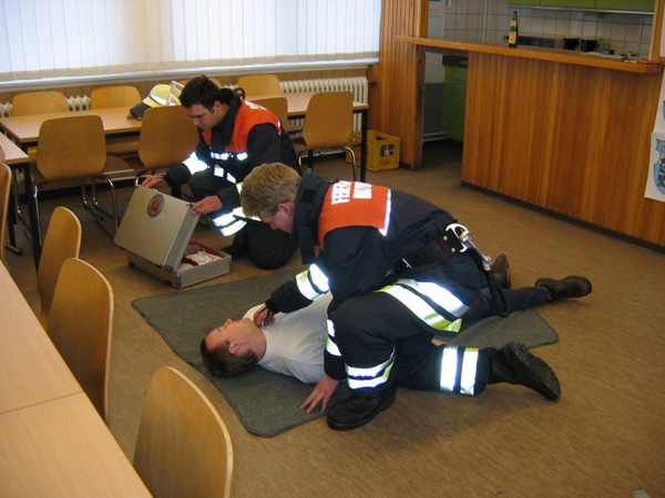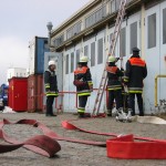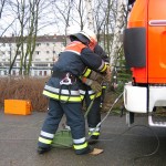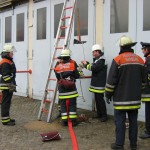 Alles halb so schlimm. Nach der Sani-Station ist sowieso alles im Kasten. Bewußtlose Person hieß es hier und es mußte schnell gehandelt werden. „Kein Problem, bei solch guten Ausbildern….“ Alle mit Bestnote bestanden. Und der Prüfungsteil am Gerät? 3-teilige Steckleiter aufbauen, sichern, A-B-C einbinden, OK perfekt, Rückbau, nächster…. Was, so schnell??? Da staunte man nicht schlecht, genauso wie beim Arbeiten mit dem Greifzug. Alles gut gelaufen.