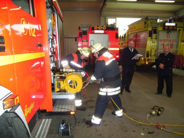 in Theorie und Praxis vor einer Prüfungskommission, bestehend aus Berufsfeuerwehr und Freiwilliger Feuerwehr an der Landesfeuerwehrschule getestet.
