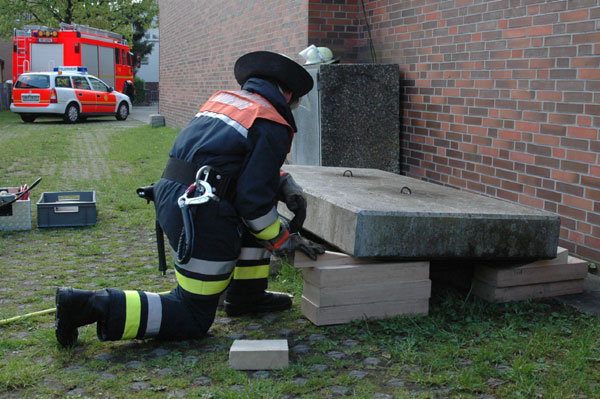 - Technische Hilfeleistung: Befreiung einer unter Betonplatten eingeklemmten Person mit Mini-Hebekissen.