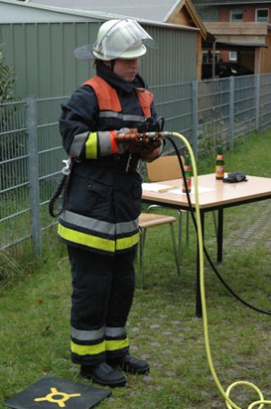 - Brandschutz: Sicherung einer Steckleiter und Einbinden von Axt, Beleuchtungsgerät und CM-Strahlrohr.