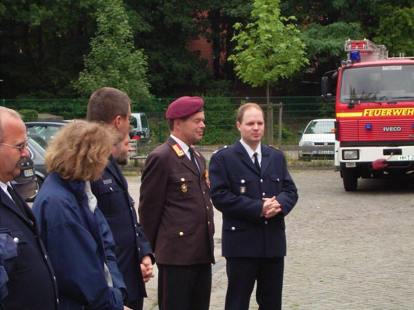 Bis zum 08. August werden die Jugendlichen noch in Hamburg bleiben. Für die Dauer ihres Aufenthaltes erwartet die Gäste ein buntes Rahmenprogramm. Heute wurden sie offiziell von FLV Dr. Peer Rechenbach am Bernliner Tor begrüßt, danach wurde die FEZ u. Rlst. Sowie die LFS / ARG besichtigt. Der heutige Abend klingt mit einem Grillabend bei der FF Rahlstedt aus. Morgen geht es u.a. zur Flughafenfeuerwehr. Am Mittwoch steht eine Fahrt nach Berlin an. Für 2006 ist eine weitere Begegnung in Salzburg geplant.