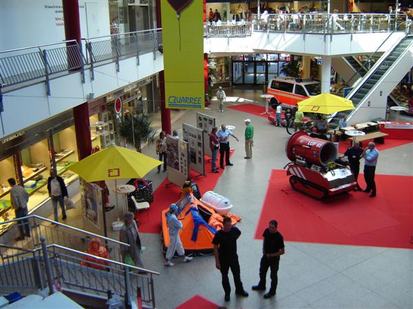 Im Forum des Quarrees informierten die Freiwilligen Feuerwehren des Bereiches Wandsbek auf Stellwänden über Ihre Organisation, ihre Aufgaben und ihr Wirken im Stadtteil. Außerdem gab es das LUF (Löschunterstützungsfahrzeug, kurz Löschroboter), die SEG (Spezialeinsatzgruppe) Schiffsicherung und vieles mehr zu sehen.