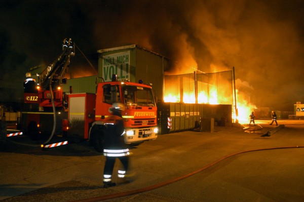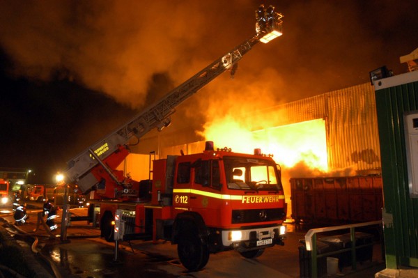 In den frühen Morgenstunden des 29.08.05 brach in einer Lagerhalle ein Feuer aus. U.a. waren sechs Freiwillige Feuerwehren mit im Einsatz ...