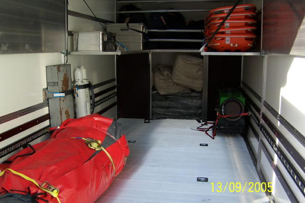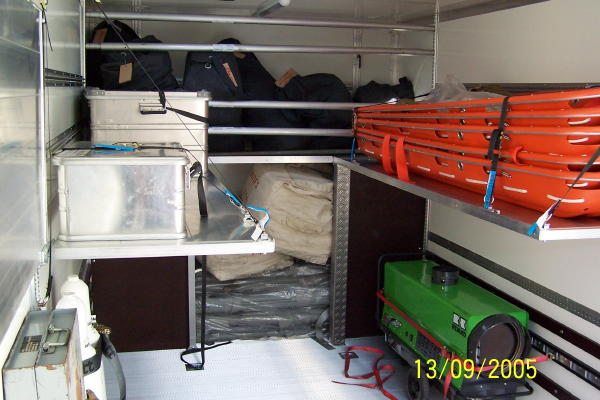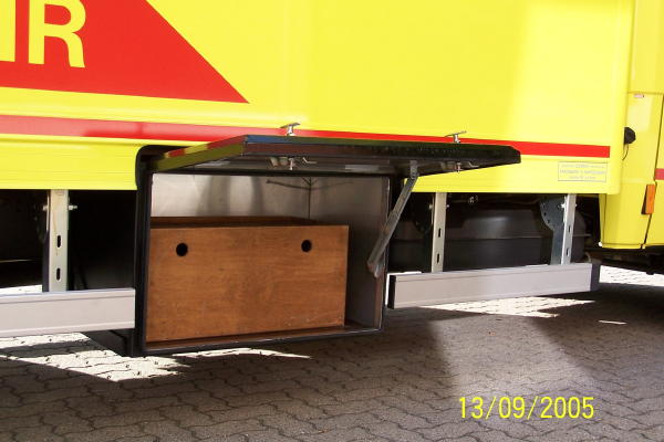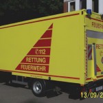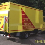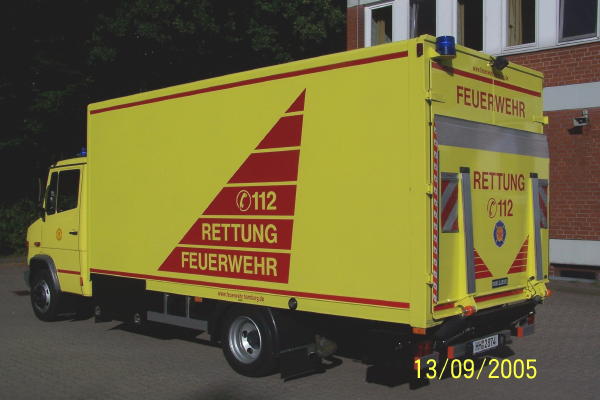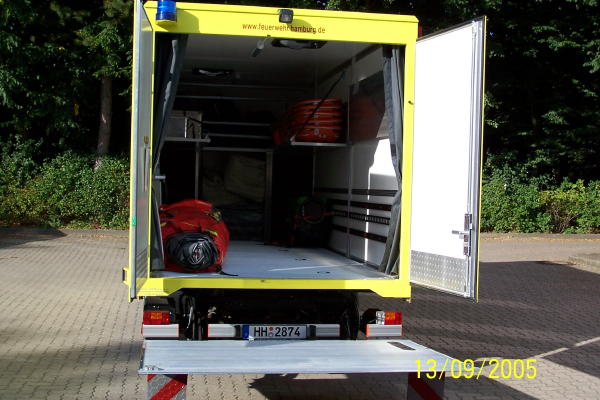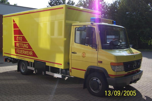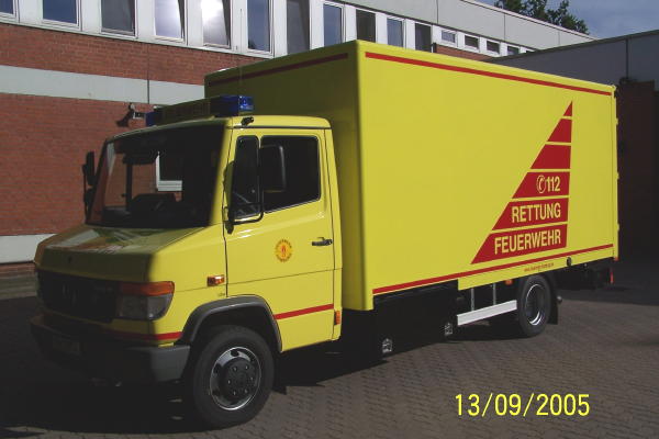 Das Chassis MB Vario 815D mit Truppkabine und einem Kofferaufbau der Fa. Gebr. Ludewig und einer Ladebordwand von D.Hollandia ist in schwefelgelb mit RAL 3000-roter Beklebung gehalten und vorerst mit der Ausstattung der alten GW-RD bestückt worden.