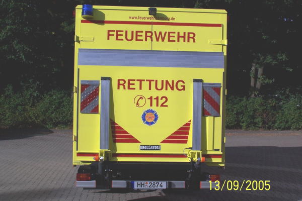 An den BF-Wachen Osdorf, Stellingen, Veddel und an der LFS wurde jetzt je ein Gerätewagen-Rettungsdienst (GW-RD) in Erwartung der kommenden WM 2006 und als Ersatz der überalterten und behelfsmässigen KatS-GW-RD (ehem. beige-farbige Arzttrupp-Kraftwagen) in Dienst gestellt.