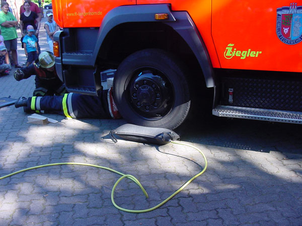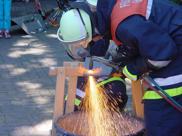 Mehrere Fettexplosionen, Übungen mit Schere, Spreizer Motorsäge, Brennschneidgerät und Hebekissen waren zu bestaunen.