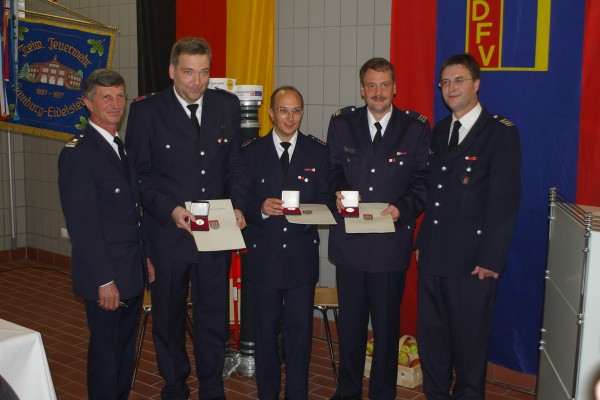 Alle 3 wurden mit der Feuerwehr-Verdienstmedaille der 2. Stufe für ihr ehrenamtliches Engagement ausgezeichnet. Zu den Gästen und Gratulanten im Eimsbütteler Feuerwehrhaus gehörten unter anderem der Landesbereichsführer Hermann Jonas, der Bereichsführer Jörg Schultze-Scheer und viele Kameradinnen und Kameraden aus verschiedenen Wehren.