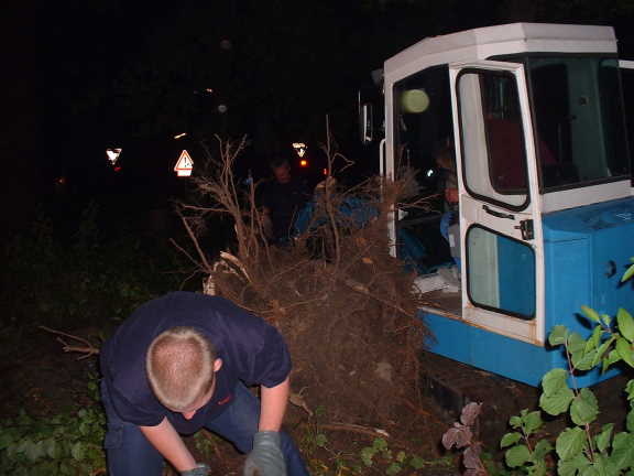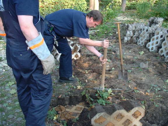 Auf dem Gelände der Freiwilligen Feuerwehr Eidelstedt hat der Umbau begonnen. Seit Anfang Oktober graben, fällen und ziehen die Feuerwehr-Frauen und Männer Bäume, Balken und Torpfosten aus der Erde. Auf der ehemaligen Grünfläche am Furtweg neben dem Hauptgebäude soll die neue Fahrzeughalle entstehen. Bis jetzt hat noch kein Bauunternehmer Hand angelegt, denn alle Arbeiten, die in Eigenarbeit erledigt werden können, wird die FF selber realisieren.