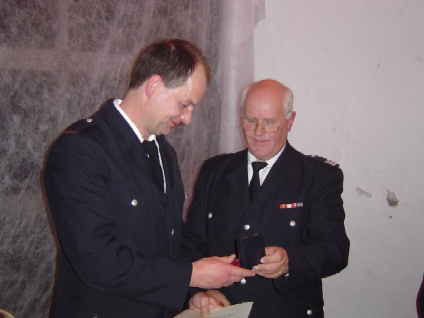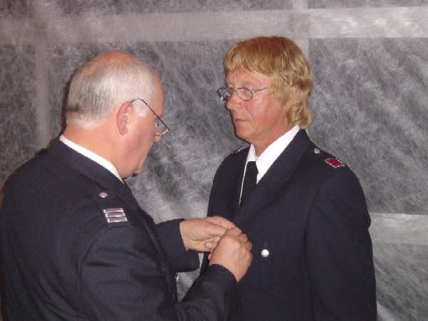Das Quartett hatte die Einsatz- und Ehrenabteilung mit Partner zu einer großen Jubiläumsfeier in das Curslacker Feuerwehrhaus eingeladen. Über achtzig Gäste begrüßten die vier Kameraden, die mit das Rückgrat der Vierländer Wehr bilden. Alle vier Kameraden sind Kraftfahrer und ausgebildete Gruppenführer, hob Wehrführer Werner Meyer in seiner Laudatio hervor. Alle VIER haben Verantwortung in der Wehr übernommen. Thomas Hitscher steht der Wehr als Wehrführer-Vertreter seit 15 Jahren mit vor. Holger Knoblauch wählte die Wehr 1990 zum 1. Gerätewart. Olaf Lütten führte über lange Zeit die Geschicke des Festausschusses und Joachim Doktor Köhler ist eingesetzter Gruppenführer der Gruppe 1 in Curslack. Viele Details und Anekdoten aus 106 Jahren Feuerwehrengagement kamen den Jubilaren und Gästen durch die Laudatoren in Erinnerung. In Erinnerung brachte Bereichsführer-Vertreter Heino Goes auch das Engagement der Ehefrauen, die in den 220.000 Stunden der Zugehörigkeit ihrer Partner zur Freiwilligen Feuerwehr diesen den Rücken freigehalten haben. Im Anschluss verlas er die Grüße und Gratulationen des Präses der Innenbehörde, des Oberbranddirektors und der Landesbereichsführung und verlieh den Jubilaren die Feuerwehr-Verdienstmedallie in Silber.