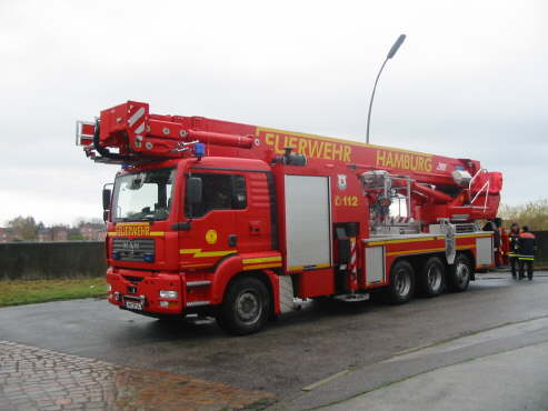 Die Kollegen der Feuer-und Rettungswache Billstedt sorgten mit dem Teleskopmastfahrzeug für schöne Aufnahmen aus der Vogelperspektive.