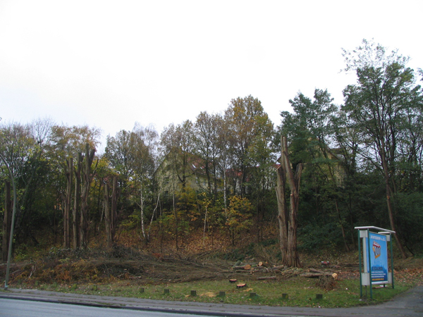 Nach mehreren Wochenenden sind nun auch die über 30m hohen Pappeln auf dem neuen Feuerwehrgelände der FF-Eißendorf gekürzt worden. Nur etwa 6m hohe Stämme ragen hier noch aus dem Boden.