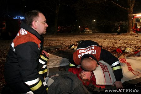 Vier Wochen zuvor wurde die Übung von den Kameraden Andreas Bölke (23) aus Hummelsbüttel und Knut Bölke (40), Wehrführer-Vertreter der Freiwilligen Feuerwehr Langenhorn-Nord vorbereitet. Dabei wurde auf eine möglichst realitätsnahe Übung wert gelegt. Neben 4 Nebelmaschinen sorgten auch Lichteffekte für eine praxisnahe Übung, so Peter Raddatz, Mit-Organisator der Übung.