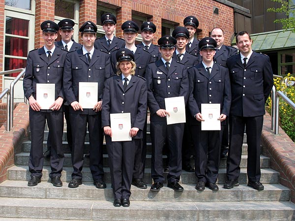 Ebenso am 06. Mai 2006 fand an der Landesfeuerwehrschule die Prüfung der 10 Anwärter und einer Anwärterin aus den Wehren des Bereiches Bergedorf statt.