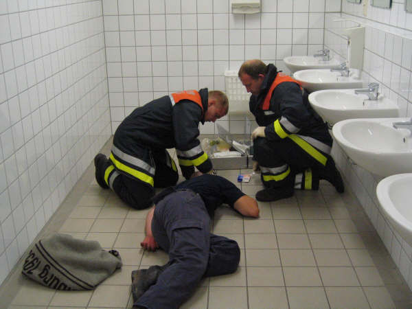 In der Ersten Hilfe ging es darum einen bewusstlosen Patienten mit einer Kopfverletzung zu versorgen. Im Brandschutz musste die 3-tlg. Schiebeleiter ordnungsgemäß aufgestellt und Gerätschaften richtig eingebunden werden.