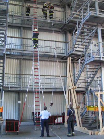 In der Ersten Hilfe ging es darum einen bewusstlosen Patienten mit einer Kopfverletzung zu versorgen. Im Brandschutz musste die 3-tlg. Schiebeleiter ordnungsgemäß aufgestellt und Gerätschaften richtig eingebunden werden.
