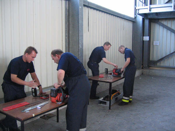 Im Bereich der Technischen Hilfe, sollte an einer Kettensäge ein Kettenwechsel vorgenommen werden. Zudem mussten Fragen zum sicheren Umgang beantwortet werden.