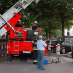 Die Brandbekämpfung gestaltete sich als schwierig, da die Drehleitern, aufgrund der räumlichen Situation, nicht zum Einsatz gebracht werden konnten. Die Brandbekämpfung erfolgte mittels 4 C-Rohren im Innenangriff. Nachdem das Feuer unter Kontrolle war, wurde das Dach mit Spezialkettensägen geöffnet und vorhandene Glutnester mittels Löschlanzen gelöscht. Bei den Wohnungen im 4. OG waren leichte Wasserschaden zu verzeichnen, welche mit Wassersaugern und Sperrfolie beseitigt werden konnten. Bis auf eine Mieterin im Dachgeschoss konnten alle Bewohner, nach Beendigung des Einsatzes, in ihre Wohnungen zurückkehren.“