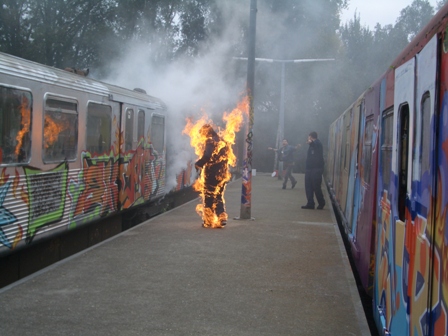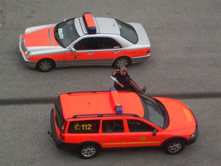 Nach ca. 10 Minuten ging in der Fahrzeughalle das Alarmlicht und die akustische Alarmierung für den gesamten Löschzug der Feuerwache Stellingen an. Alle Fahrzeugführer sprinteten zum Alarmdrucker und holten die Depeschen. Laut dieser wurden die Mannschaften zu einem Feuer mit starker Rauchentwicklung gerufen. Die Fahrzeuge verließen mit Blaulicht und Martinshorn ihre Stellplätze an der Wache. Auf der Anfahrt gab der Zugführer den Befehl für das HLF 1 und HLF 2 den Angriffstrupp mit Atemschutz ausrüsten zu lassen. Am Einsatzort angekommen, wurde eine starke Verqualmung aus dem zweiten Obergeschoss bestätigt. Als der Zugführer an das Gebäude zum Erkunden auf das Gebäude lief, kam ihm eine brennende Person entgegen. (Hier schon mal ein großes Dankeschön an Danny!) Der Fahrzeugführer des HLF 1 erkannte sofort die Situation und gab seinem Angriffstrupp den Befehl, die brennende Person mit dem Schnellangriffschlauch abzulöschen. Der Angriffstrupp vom HLF 2 ist daraufhin mit schwerem Atemschutz zur Erkundung in das Gebäude geschickt worden. Zur gleichen Zeit wurde vom Wassertrupp die Wasserversorgung für das HLF 1 sichergestellt. Der Zugführer 15 gab eine alarmierende Rückmeldung: „Hier 15/0 von der Einsatzstelle Feuer – Menschenleben in Gefahr (FEUY). Ein RTW, ein NEF anrücken lassen! Eine bewusstlose Person mit schwerer Brandverletzung. Starke Rauchentwicklung aus dem zweiten Obergeschoss, Wohnung wird begangen. Unterschrift Zugführer 15.“ Die Rückmeldung wurde von der FEZ (Feuerwehreinsatzzentrale) bestätigt. (Auch hier ein großes Dankeschön an Markus!) Der Angriffstrupp vom HLF 2 konnte mit dem 1C-Rohr eine brennende Matratze ablöschen. Die Wohnung und der Hausflur wurden mit einem Druckbelüfter vom Rauch befreit, so dass der Zugführer nach ca. 10 Minuten „Abspann“ geben konnte. Sämtliche Geräte, die im Einsatz waren, wurden wieder auf den Fahrzeugen verlastet. Nach einer kleinen Pause am Einsatzort ging es auf Status 3 (Funk einsatzbereit) wieder zurück zur Wache.