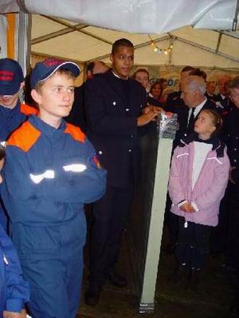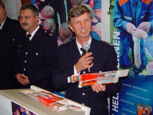 Den Teil der Festreden abschließen wollte der Duvenstedter Jugendfeuerwehrwart Olaf Krohn, indem auch er nochmals den Weg der JF-Gründung von den ersten Diskussionen um die Notwendigkeit einer solchen bis hin zur Umsetzung mit seinem Vertreter Jörg Christ nachzeichnete; allerdings wollten sich natürlich auch noch die Mitglieder der Duvenstedter JF selbst für die etlichen Geschenke und den Einsatz aller Beteiligten bedanken.